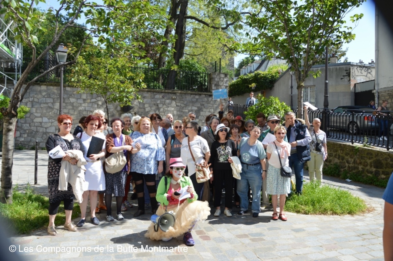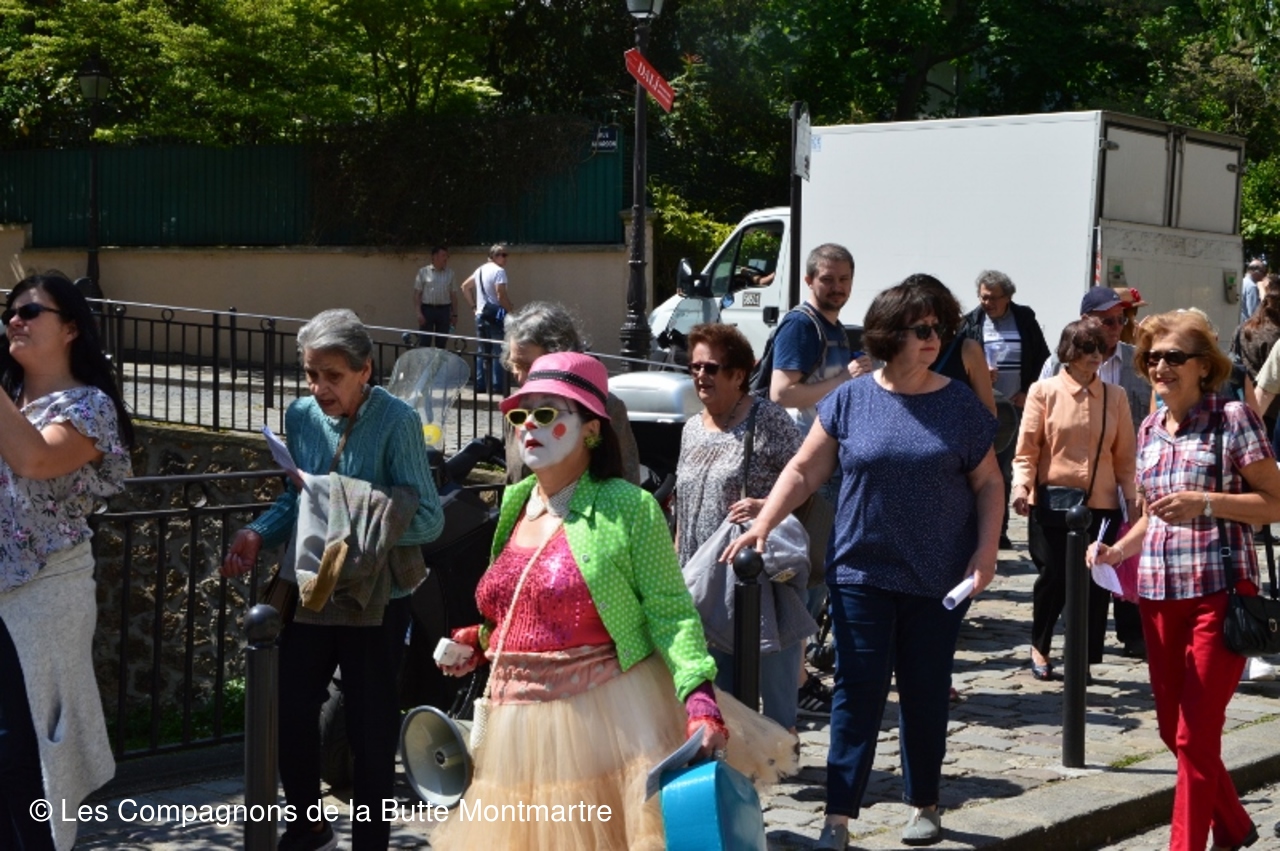 Par un bel après-midi nous avons escaladé la Butte pour l'association EMMA guidé par le clown " Pepette"