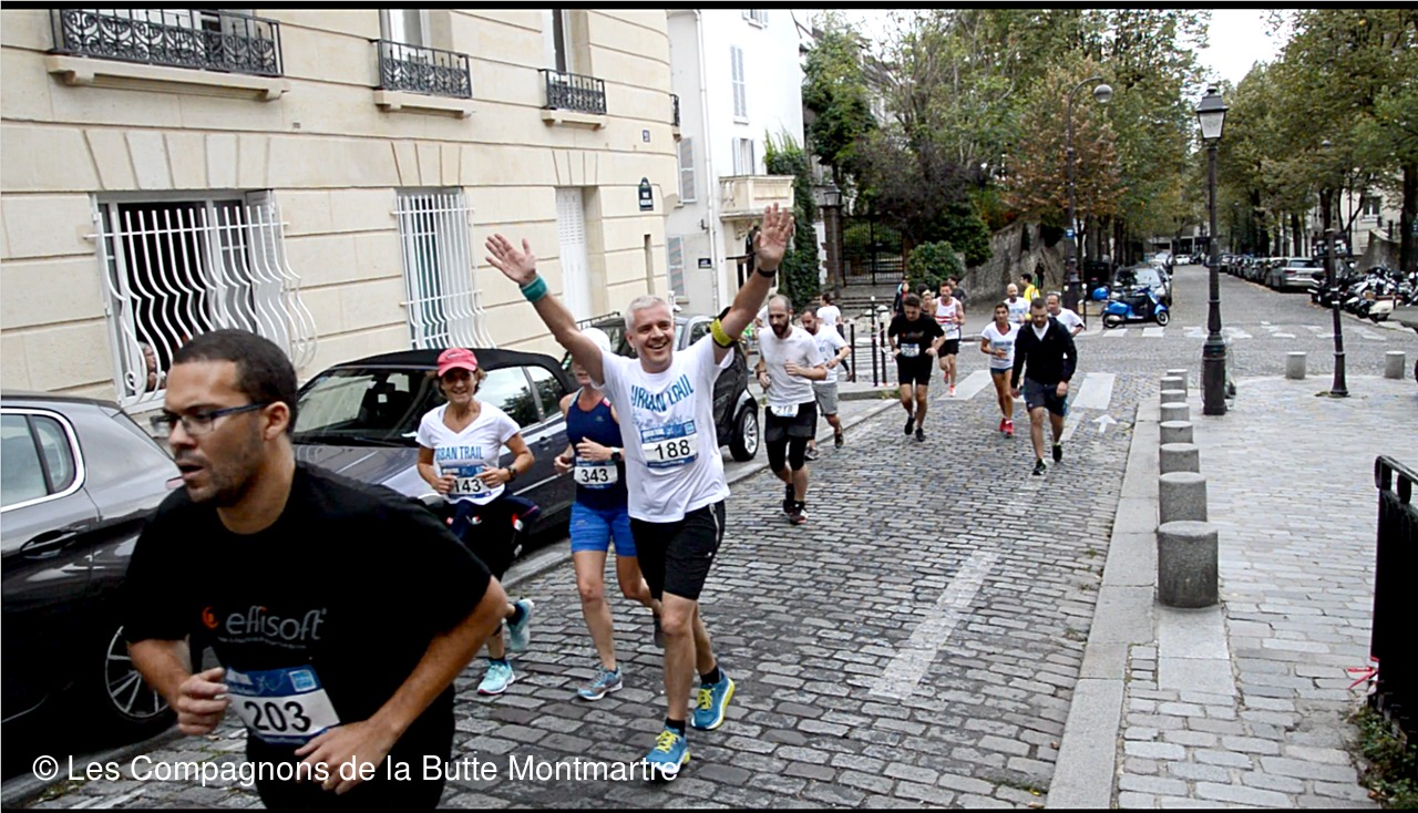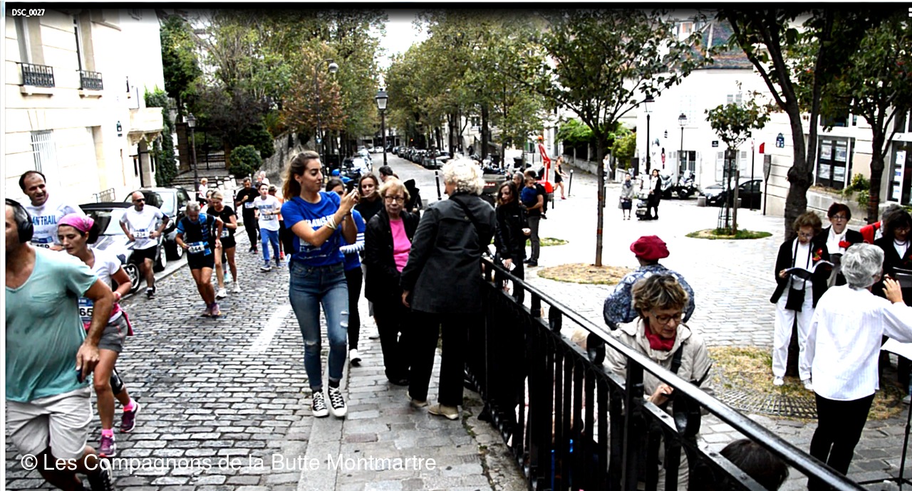 Samedi 23 septembre, lors de la première édition de la course URBAN TRAIL, parrainée par la championne Olympique Marie-Jo Perrec, la chorale des Compagnons a chanté rue Norvins près de la sculpture du Passe-Muraille.