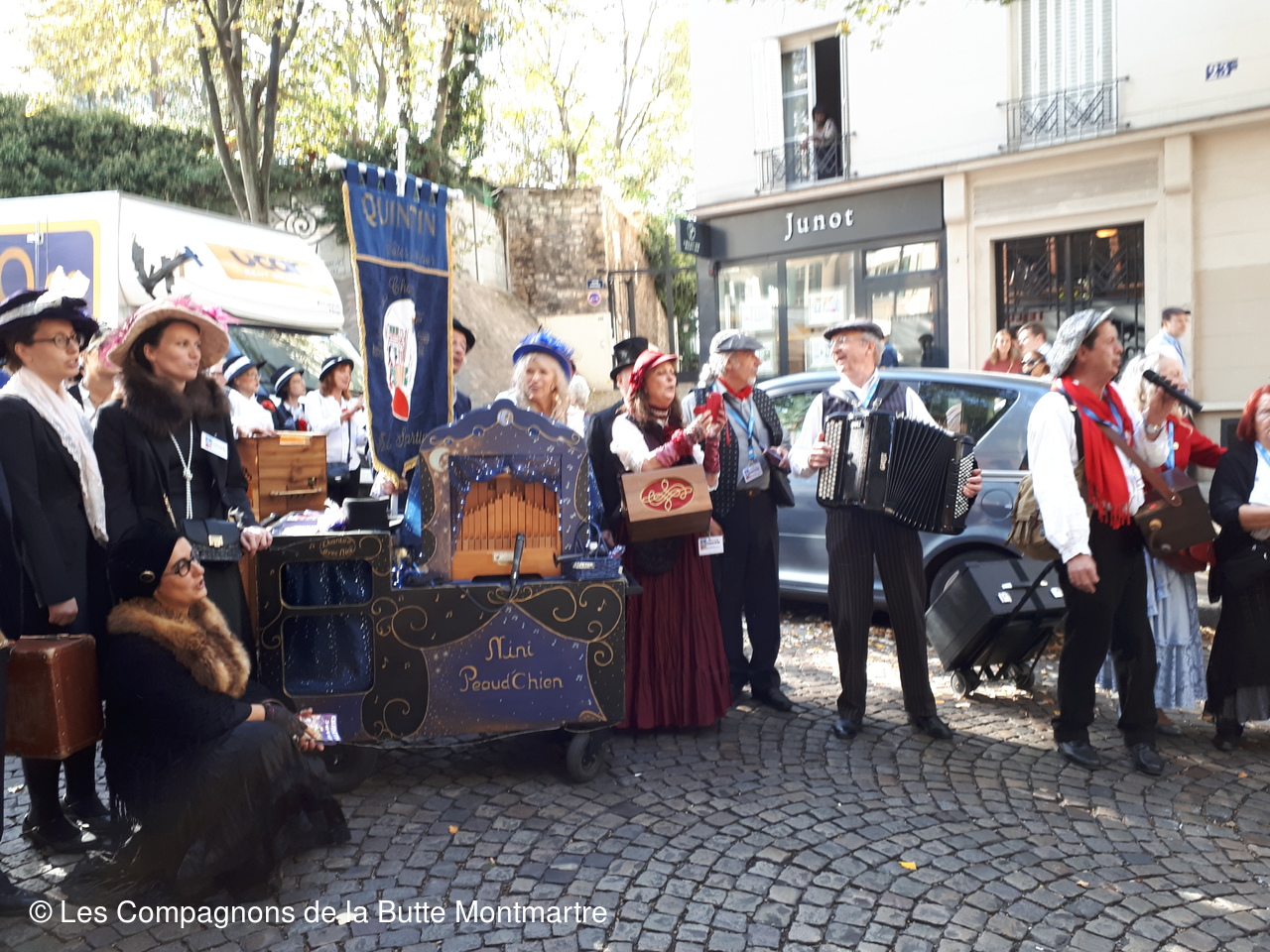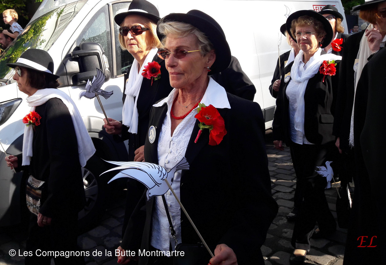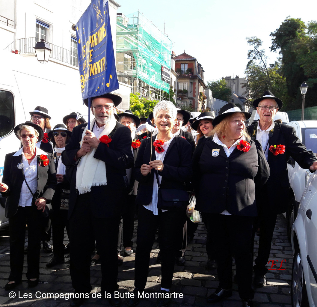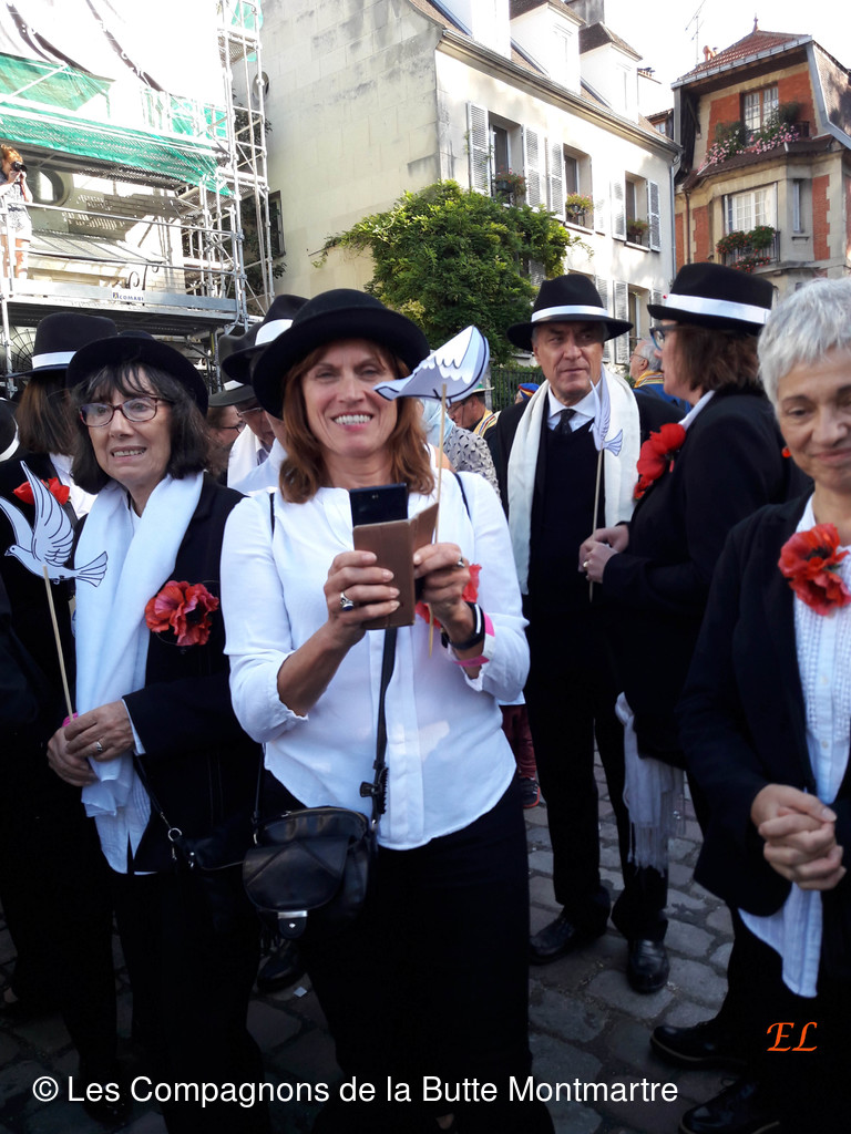 Ensuite ce fut un joyeux défilé entre les bandas, les confréries et surtout près de nos amis de Quintin qui ont donné de la voix tout au long du parcours. Le soir nous les avons retrouvés pour un repas festif Chez Eugène place du Tertre.