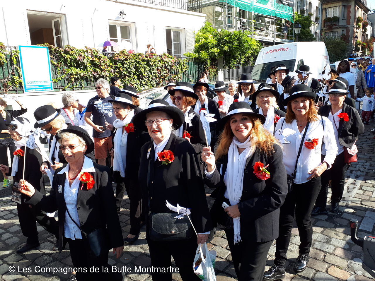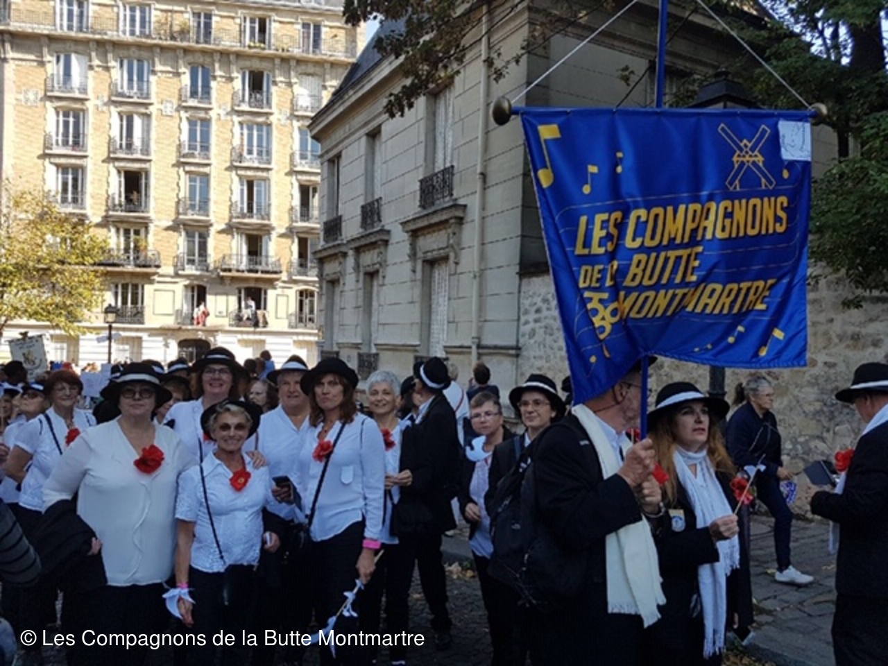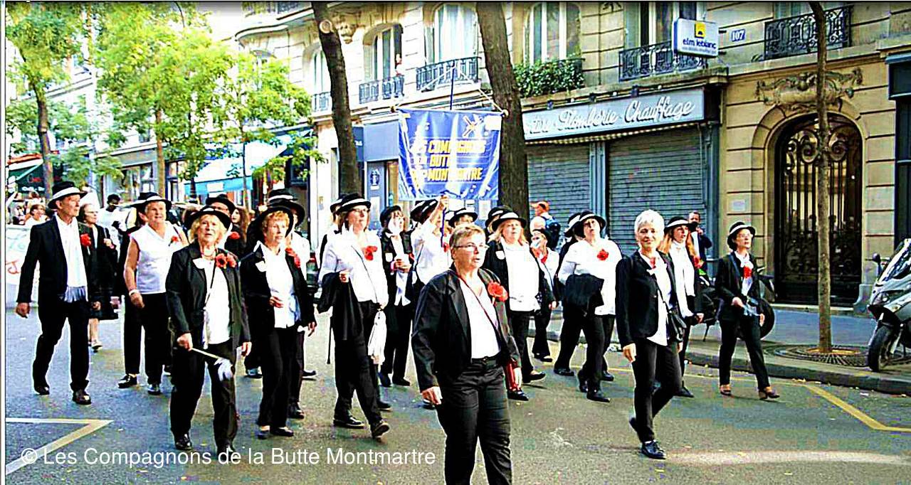 Ensuite ce fut un joyeux défilé entre les bandas, les confréries et surtout près de nos amis de Quintin qui ont donné de la voix tout au long du parcours. Le soir nous les avons retrouvés pour un repas festif Chez Eugène place du Tertre.