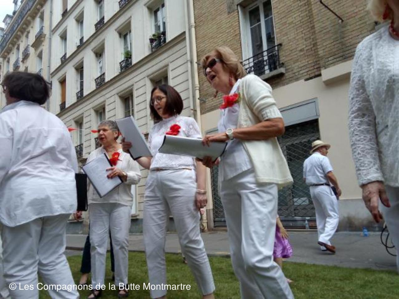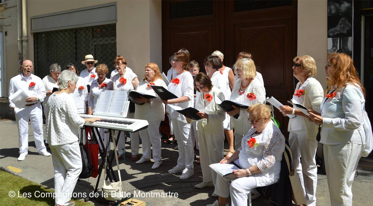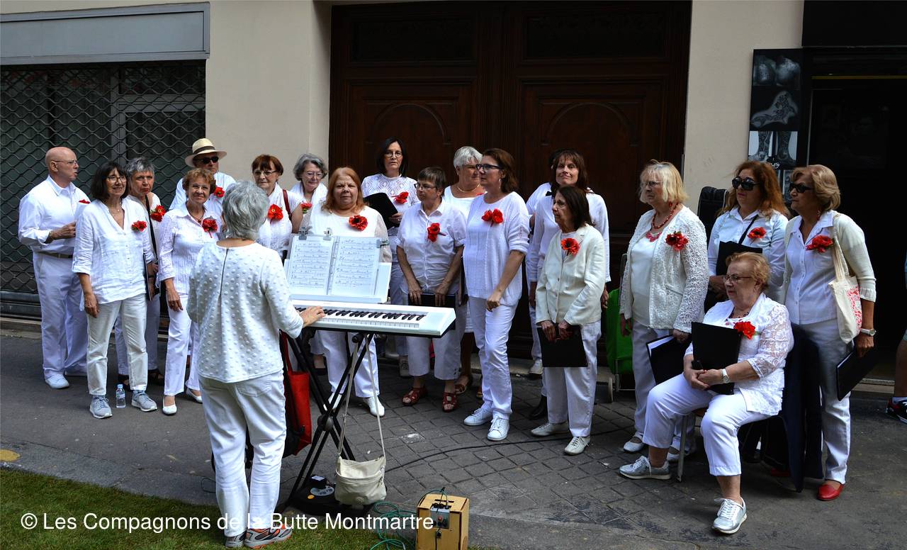 Ambiance de fête pour les petits et les grands et le plaisir de fouler le gazon lors d'une chanson de notre répertoire. Le soleil était présent et les passants également.