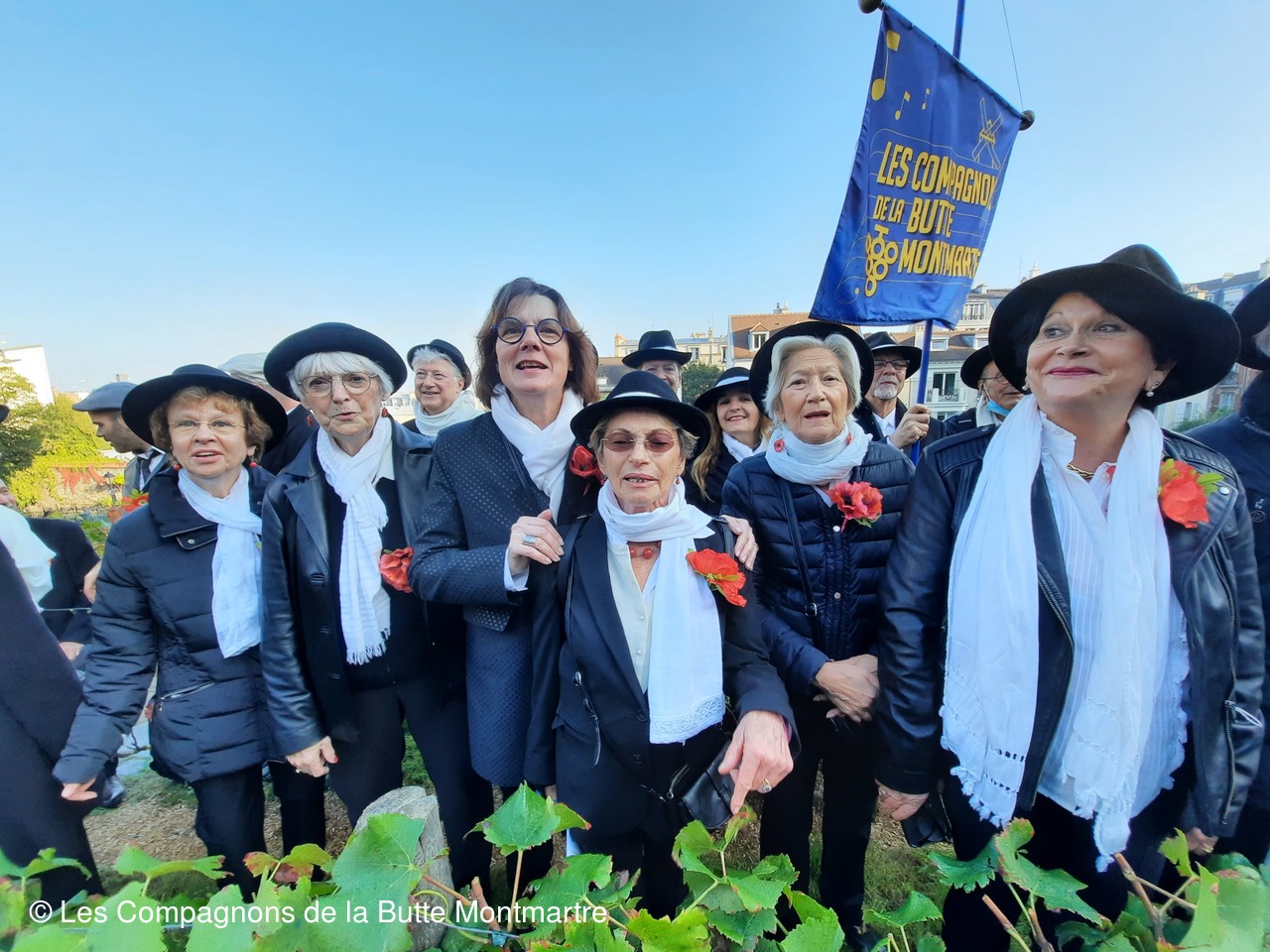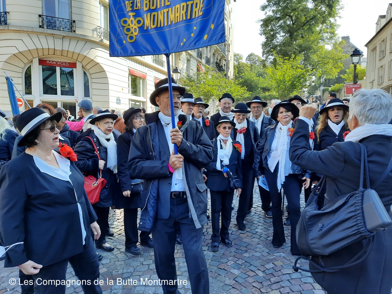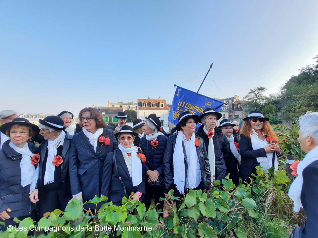 C'est en chanson que les Compagnons de la Butte Montmartre, dans les vignes, ouvrent le traditionnel ban des vendanges.