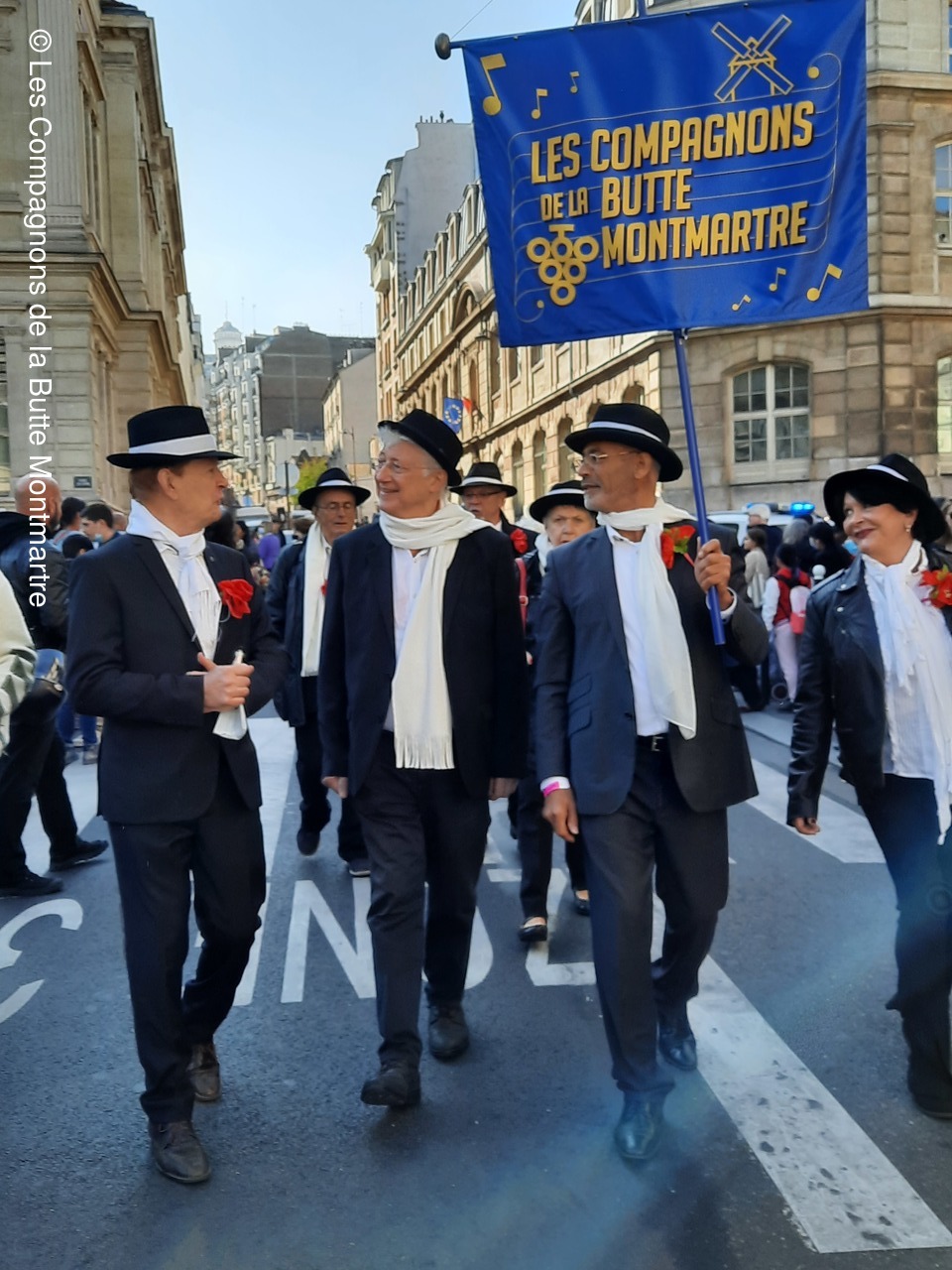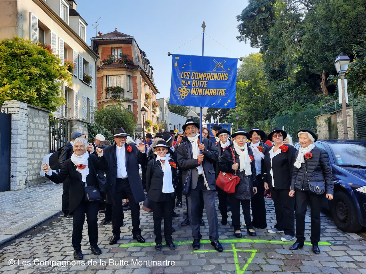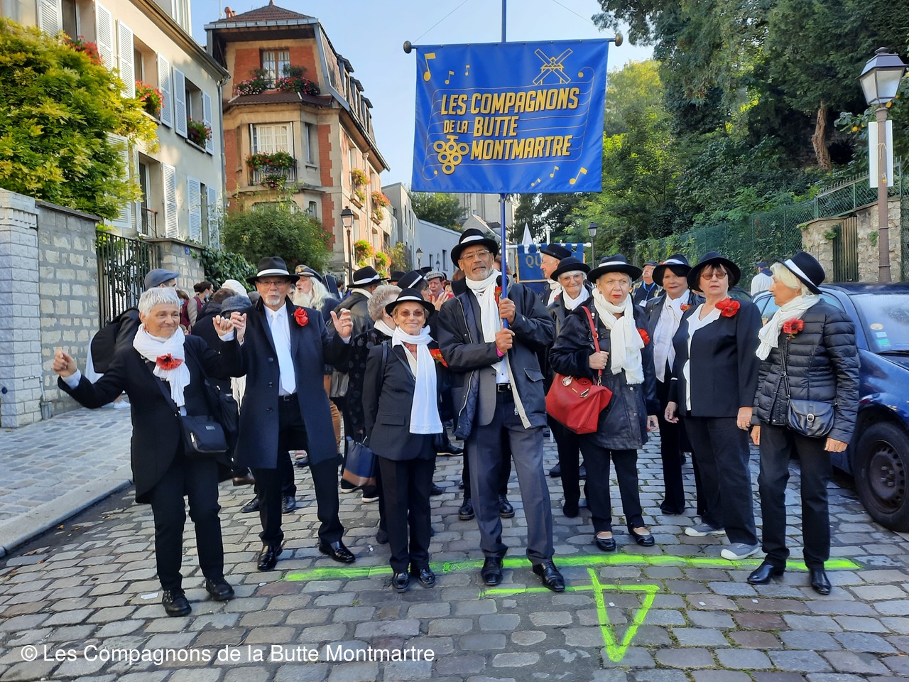 Nos fidèles amis bretons, Les Chanteurs de Rues de Quintin, sont à nos côtés pour le défilé dans les rues Montmartroises.