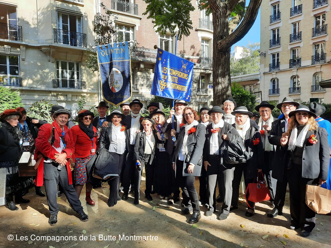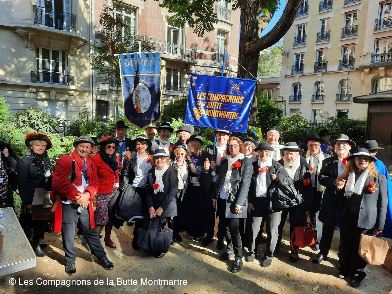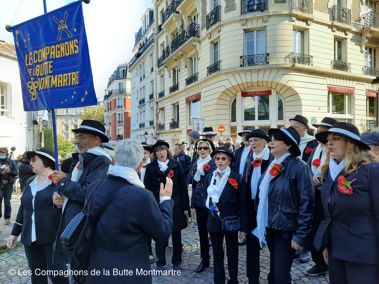 Nos fidèles amis bretons, Les Chanteurs de Rues de Quintin, sont à nos côtés pour le défilé dans les rues Montmartroises.