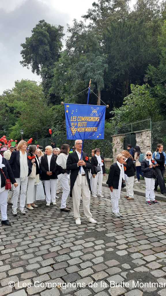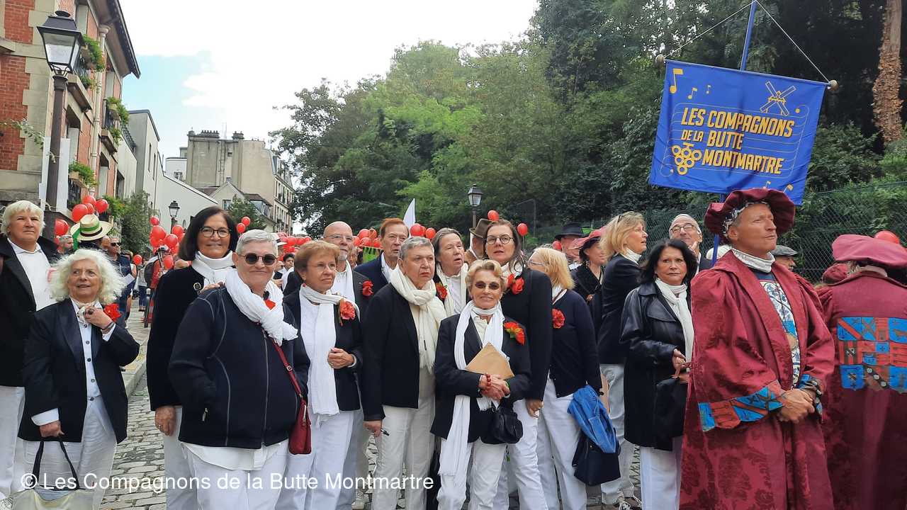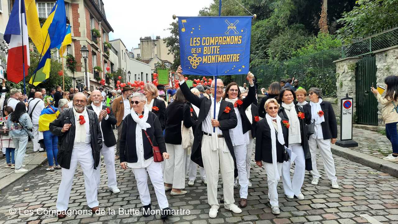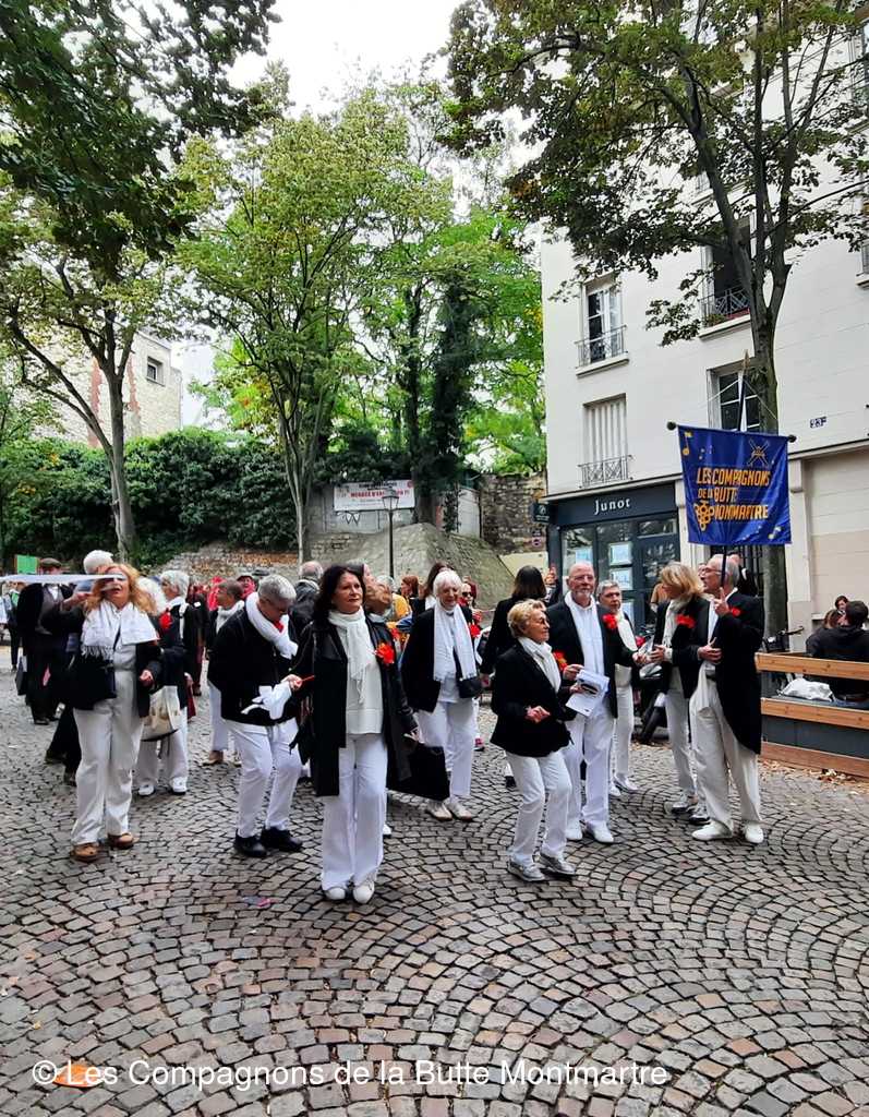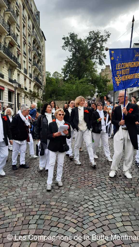 Le grand défilé dans les rues montmartroises s'est mis en route dans le bruit, la joie , la musique et la bonne humeu, jusqu'à la Mairie où un buffet nous attendait.