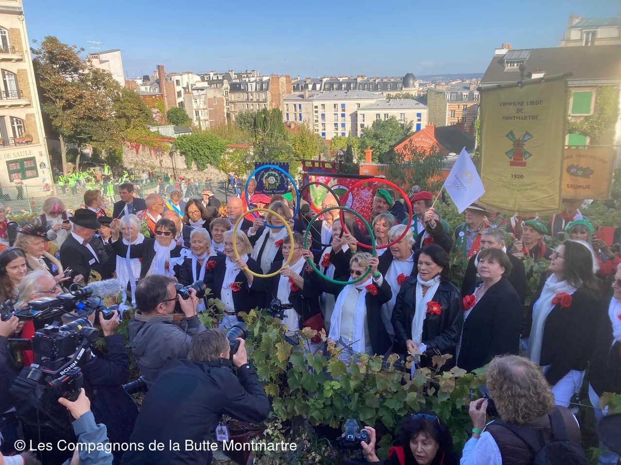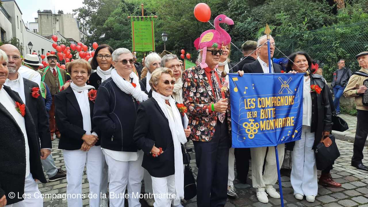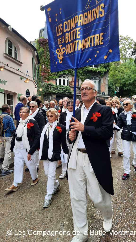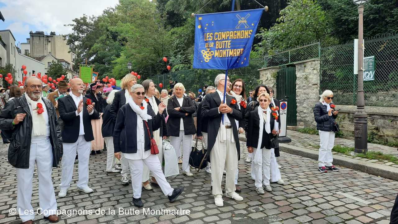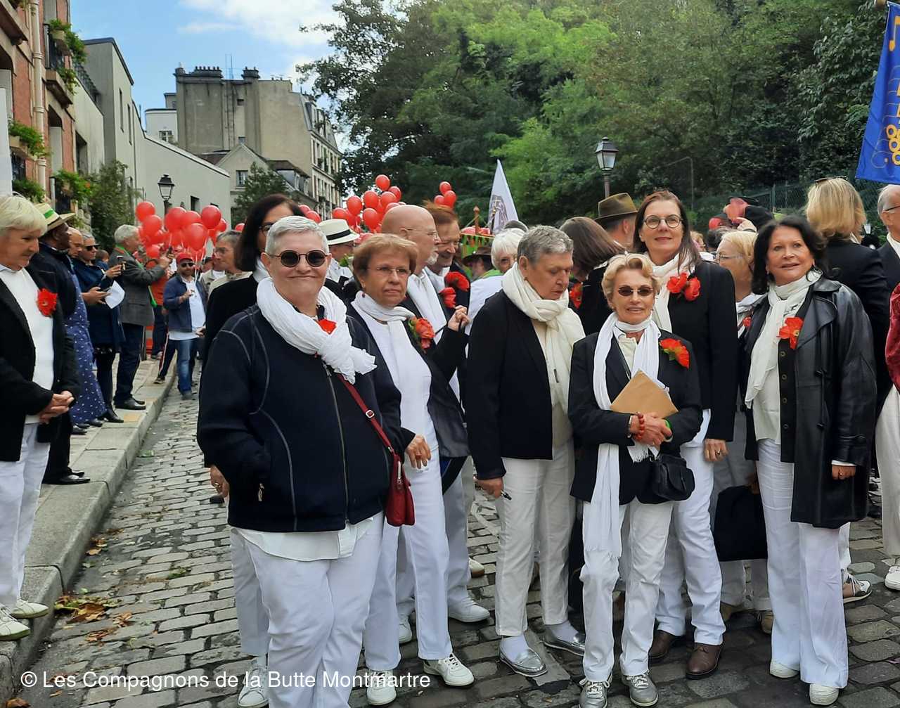 Le grand défilé dans les rues montmartroises s'est mis en route dans le bruit, la joie , la musique et la bonne humeu, jusqu'à la Mairie où un buffet nous attendait.