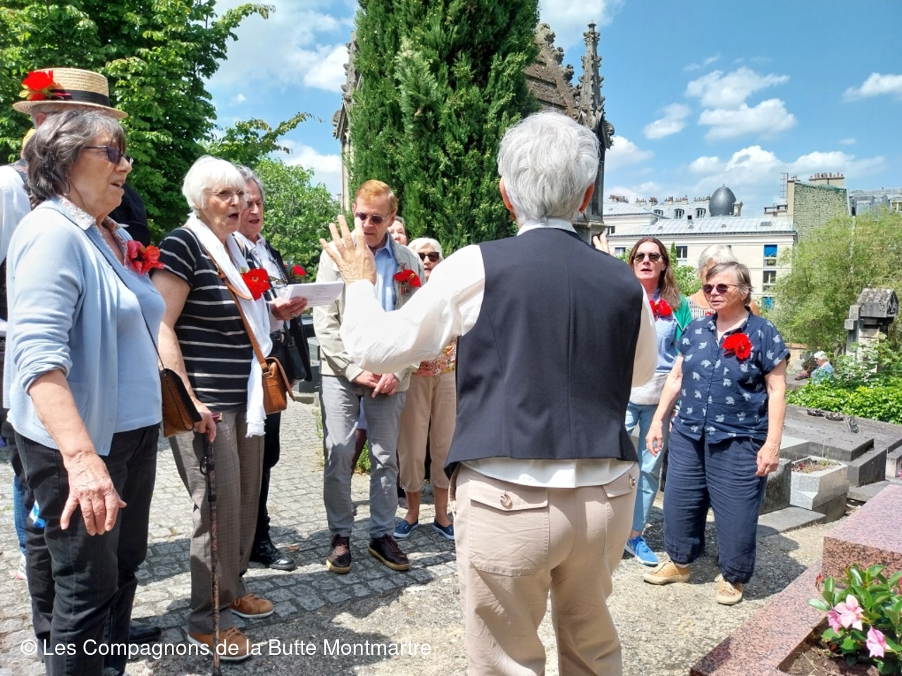 Pour le printemps des cimetières, quelques Compagnons dirigés par Brigitte Mazères ont chanté leur chanson sur Utrillo, sur la tombe d'Utrillo," nous avions l'impression d'être dans le ciel et de porter nos voix jusqu'à lui" .